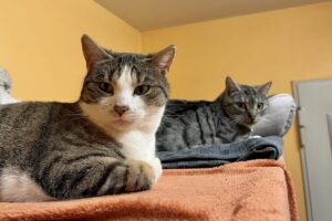 Die zwei süßen Schwestern Frieda und Rosalie stammen aus Wohratal-Halsdorf. Sie waren dort bereits bei einer Tierschutz-Kastrationsaktion kastriert worden und hatten dann eine betreute Futterstelle gehabt, die nun aber verlassen wurde. So zogen sie zu uns ins Tierheim.