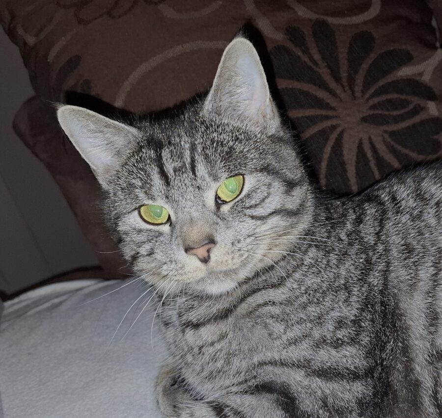 Ich heiße ROMY, bin ca 4 Jahre alt, weiblich, kastriert und gechipt. Ich bin silbergrau getigert, vermutlich habe ich Russisch Blau in meiner Blutlinie, würde meine Farbe und mein flauschiges Fell erklären.