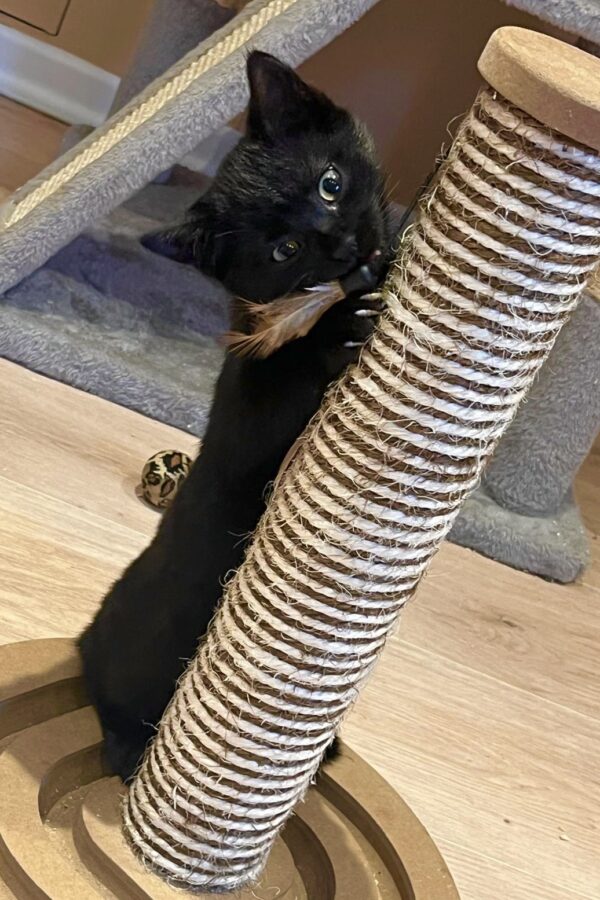 Die drei Kätzchen Yoshi, Peach und Daisy stammen von der Katze Juniper ab, die mit drei weiteren Katzen (Lucia, Lotus und Josta, der vermutlich ihr Sohn ist) im Marburger Waldtal gesichert wurde, wo sie umherstreunten und unter einem Balkon Zuflucht gesucht hatten. Sie war bereits tragend und brachte bei uns ihre Babys zur Welt.