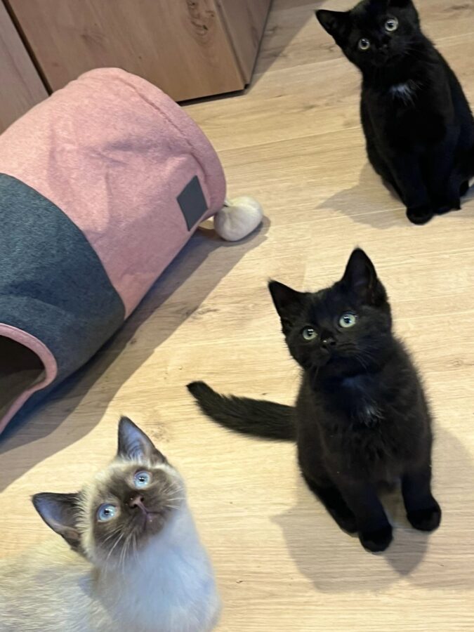 Die kleinen Siam-Mix-Kätzchen sind neugierig, altersgemäß verspielt und freuen sich auf ein glückliches Leben als Familienkatzen.