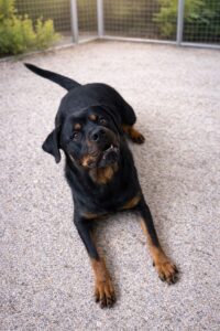 gab keine behördlichen Auflagen, dennoch sollte sie in erfahrene Hände vermittelt werden – idealerweise zu jemandem mit Rottweiler-oder Gebrauchshunderfahrung, der souverän und ruhig mit ihr umgehen kann.