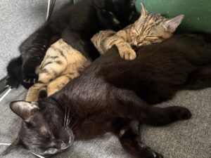 Sie sind besonders anfangs noch teils schüchtern und vorsichtig, wenn sie sich jedoch eingelebt haben, verhalten sie sich jungkatzentypisch neugierig und sehr verspielt. Während die getigerte Rosie sich schnell verschmust zeigt und dem Menschen öffnet, ist ihre schildpattfarbende Schwester Birdie noch zurückhaltender. Ebenso gibt bei den Jungs der mutige Archie gerne den Ton an und fordert auch aktiv Streicheleinheiten ein, Louie ist noch schüchterner.