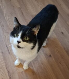 Dicki ist ca 5 Jahre alt, schwarz/weiß, EKH, also die gemeine Hauskatze, kastriert, gechipt und die Zähne sind frisch saniert. Wir sehen Dicki als ehemalige Wohnungskatze, als absoluter Einzelkater er ist sehr Besitzergreifend, am liebsten ganz dicht bei seiner Bezugsperson und holt sich so viele Schmuseeinheiten wie nur möglich. Er kennt Katzenklo und beim Futter ist er schon ein kleiner Gourmet. Da er die letzten Jahre auf der Straße gelebt hat, hat er natürlich auch schlechte Erfahrungen gemacht. Er hat etwas Angst vor Füßen, der arme Kerl weiß sicher warum, ansonsten ist er unauffällig. Er ist momentan auf einer privaten Pflegestelle im Raum Gladenbach und wünscht sich einen Platz als Einzelprinz in einer Familie ohne kleine Kinder, gerne an ruhige Person. Er sollte einen gesicherten Freigang auf Balkon oder Terrasse haben, schön wäre natürlich wenn er in absolut ruhiger Wohnlage, weit weg von stark befahrenen Straßen durch die Natur streifen dürfte.